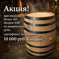 Наши бочки изготовлены из оригинального белого скального американского дуба, который произрастает на определенных почвах с особым климатом. Его древесина передает танинам особые неповторимые свойства. Такие бочки мало подвержены усушке, что особенно будет полезно тем винокурам, у которых нет специальных помещений для хранения и хранить бочку они собираются в обычной квартире. Дуб для бочек выращен на специальной плантации в Кентукки.