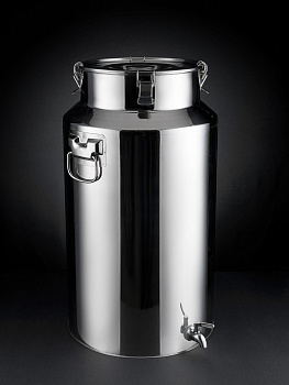 - Бидон подходит для использования в качестве бродильной емкости. Нержавеющая сталь, из которой он выполнен, нейтральна к кислотам и средам, поэтому вы можете не беспокоиться за свое сырье. Для брожения вам потребуется только установить гидрозатвор.