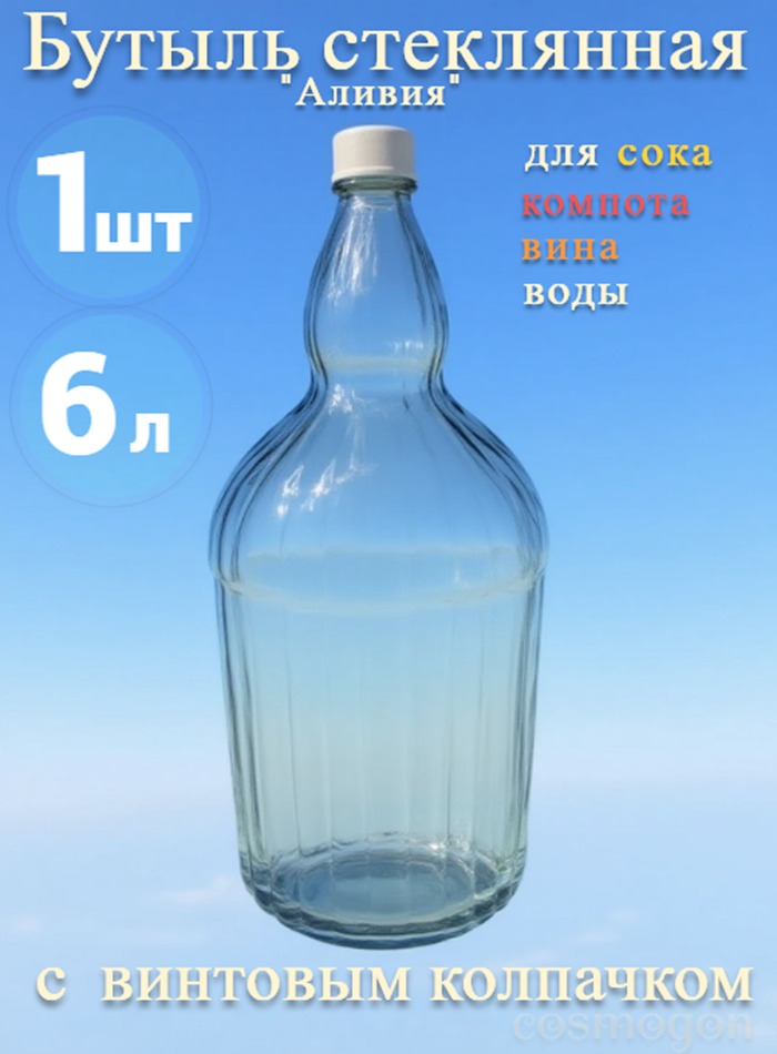 Бутылка АЛИВИЯ 6л предназначена для хранения и транспортировки самогона, вин, настоек, наливок и т.д. Изготовлена из высококачественного стекла и подходит для многократного использования. Имеет привлекательный дизайн и станет настоящим украшением стола.