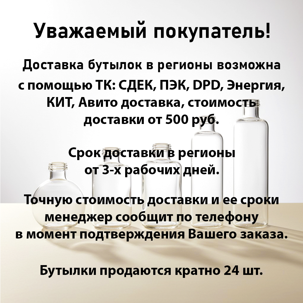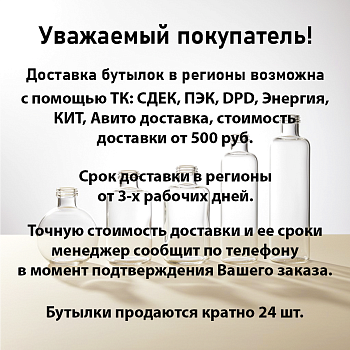 - Бутылки продаются кратно 24шт. Габариты товара (упаковка для транспортировки) - 60*40*40см, 23,3кг.