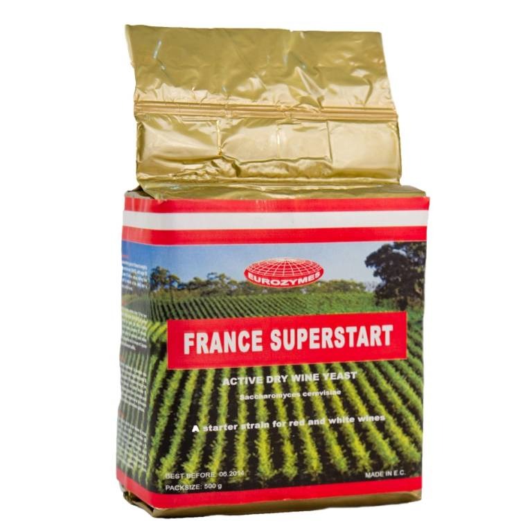 Спиртовые дрожжи Франс Суперстарт обеспечивают высокую скорость брожения, не меняя на вкус и аромат исходного сырья. Подходят для плодово-ягодных вин. Дозировка от 20 до 80 г на 100 л сусла.