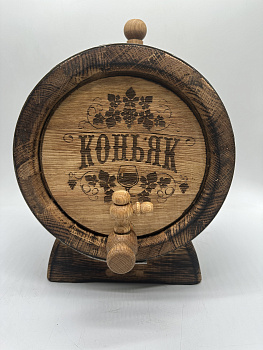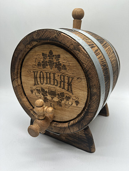 Дубовая бочка подарочная «КОНЬЯК» внешний обжиг 5 л (кавказский дуб) с краном - отличный вариант подарка на День Рождения или любой праздник. Бочка имеет привлекательный внешний вид и станет настоящим украшением праздника. Подходит для хранения и выдержки вина, самогона, виски, рома и другого крепкого алкоголя. Выполнена из кавказского скального дуба породы Quercus petraea, возраст которого не менее 80 лет. Бочка изготовлена на современном европейском оборудовании, что гарантирует идеальную геометрию бочки и качественную ее обработку.