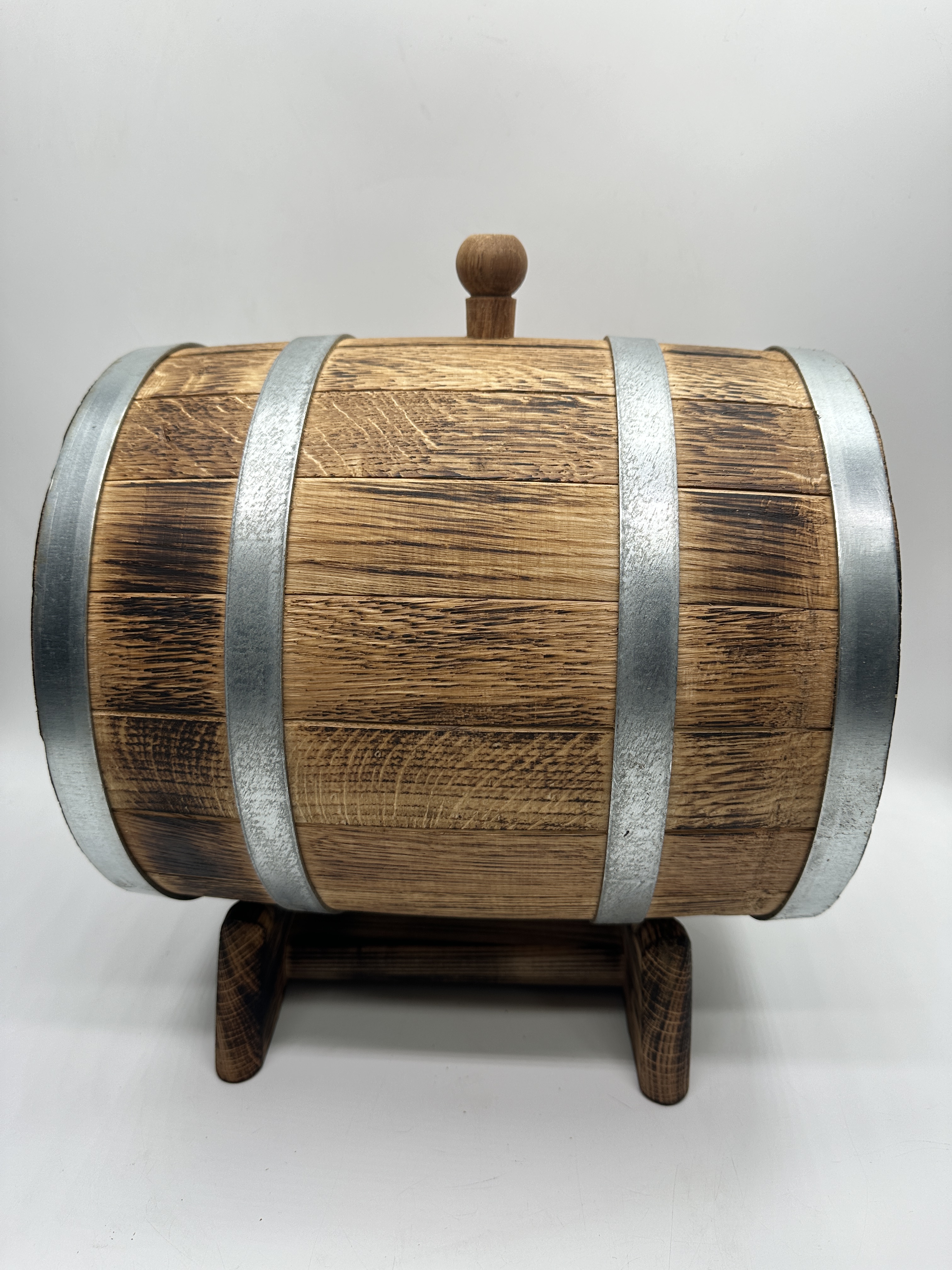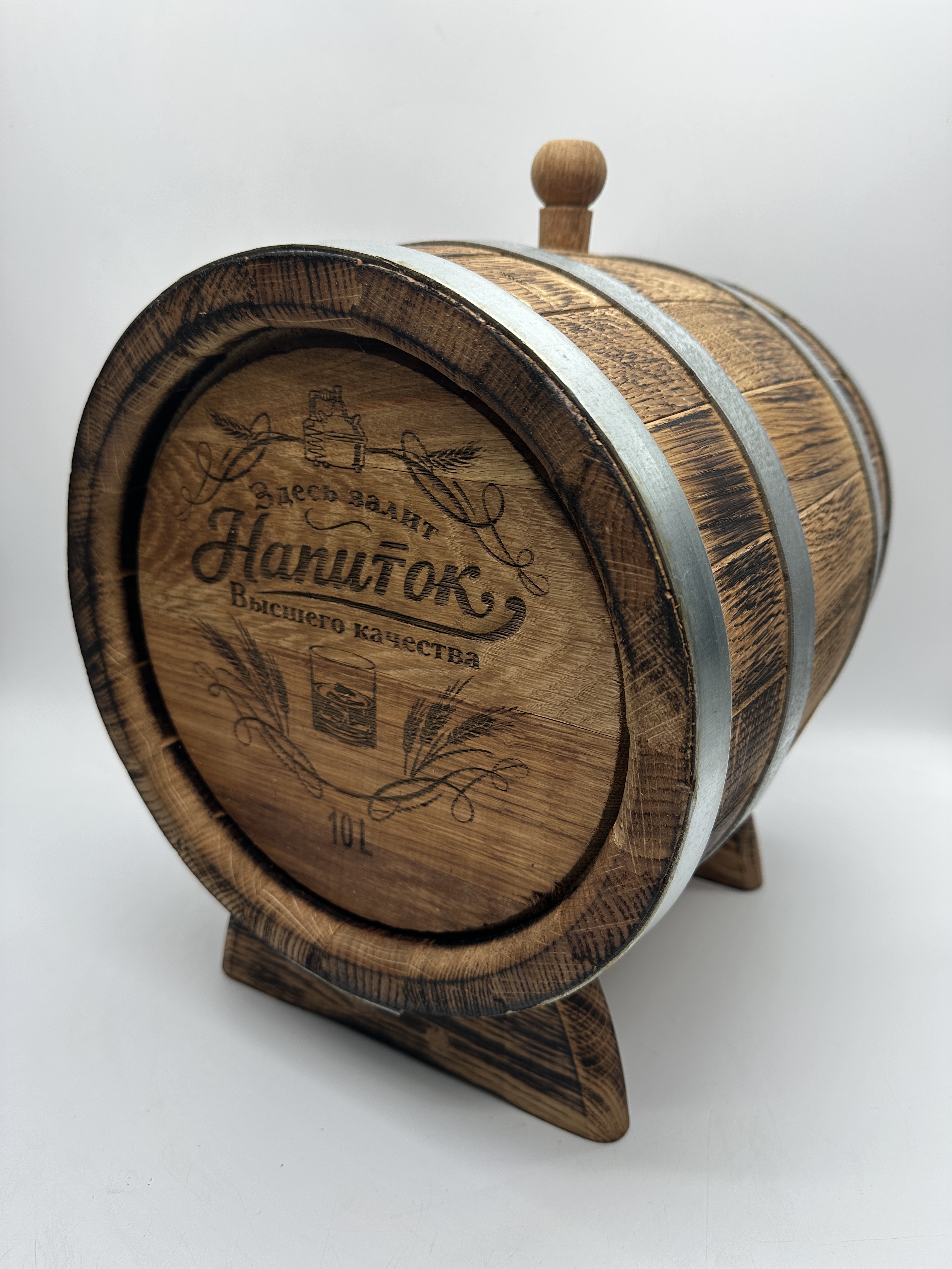Дубовая бочка подарочная «НАПИТОК ВЫСШЕГО КАЧЕСТВА» внешний обжиг 10 л (кавказский дуб):