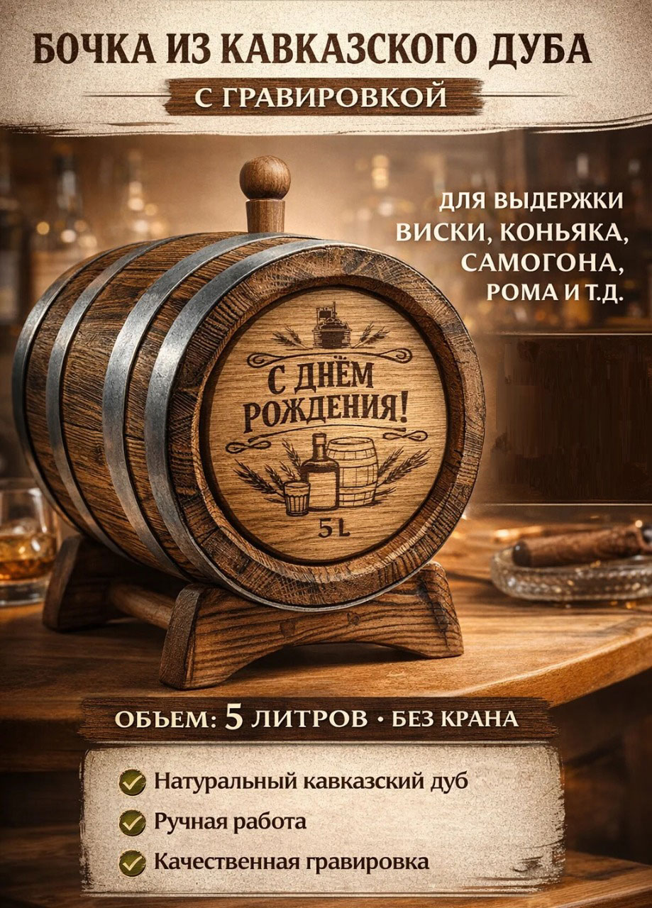 Отзывы о товаре Дубовая бочка подарочная «С ДНЕМ РОЖДЕНИЯ» внешний обжиг 5 л (кавказский дуб)