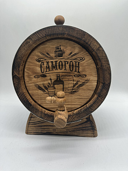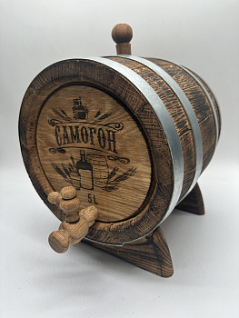 Дубовая бочка подарочная «САМОГОН» внешний обжиг 5 л (кавказский дуб) с краном - отличный вариант подарка на День Рождения или любой праздник. Бочка имеет привлекательный внешний вид и станет настоящим украшением праздника. Подходит для хранения и выдержки вина, самогона, виски, рома и другого крепкого алкоголя. Выполнена из кавказского скального дуба породы Quercus petraea, возраст которого не менее 80 лет. Бочка изготовлена на современном европейском оборудовании, что гарантирует идеальную геометрию бочки и качественную ее обработку.