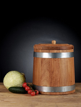 - Дубовая кадка, сделанная вручную, будет идеальным подарком для любителя солений и домашнего консервирования.