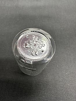 - Выполнен из прозрачной пленки с серебристыми элементами в виде отрывной ленты. Верх также декорирован диском цвета серебра.