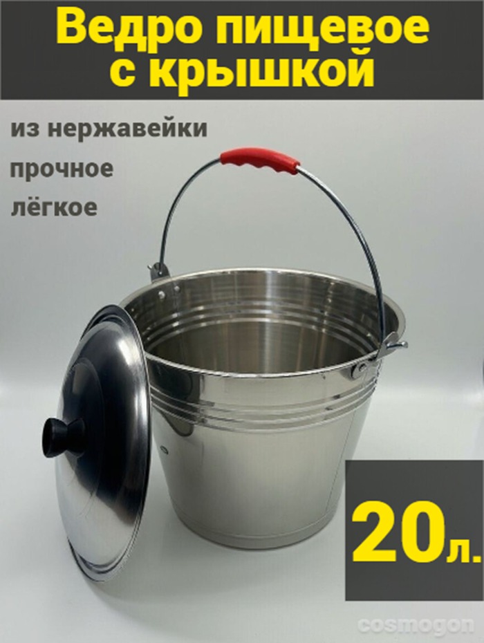 Ведро из нержавейки 20 л с крышкой – это изделие, предназначенное для хранения и транспортировки различных жидкостей и сыпучих материалов.