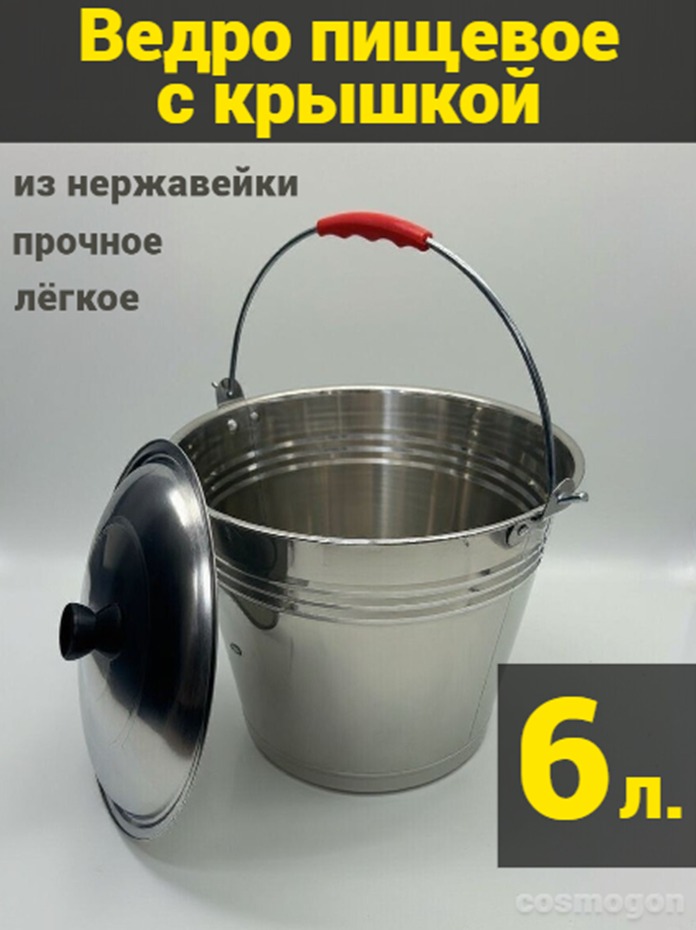 Ведро из нержавейки 6 л с крышкой – это изделие, предназначенное для хранения и транспортировки различных жидкостей и сыпучих материалов.